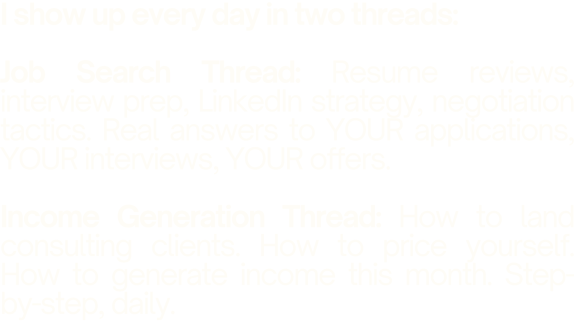 Same frameworks. Same strategies. But delivered through daily community coaching instead of 1-on-1 calls. At scale, that means I can price it at $39/month and still deliver transformational value.